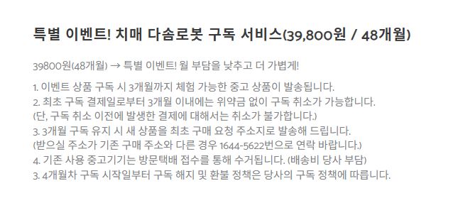 *해당 이벤트 상품에는 위 위약금율이 적용됩니다.